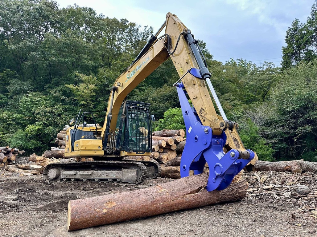 この度、木質バイオマス燃料用チップの製造に使用しているバックホウのアタッチメントを更新いたしました。 これからも木材チップの製造を通じて地域の発展とSDGsの推進に努めて参ります。
